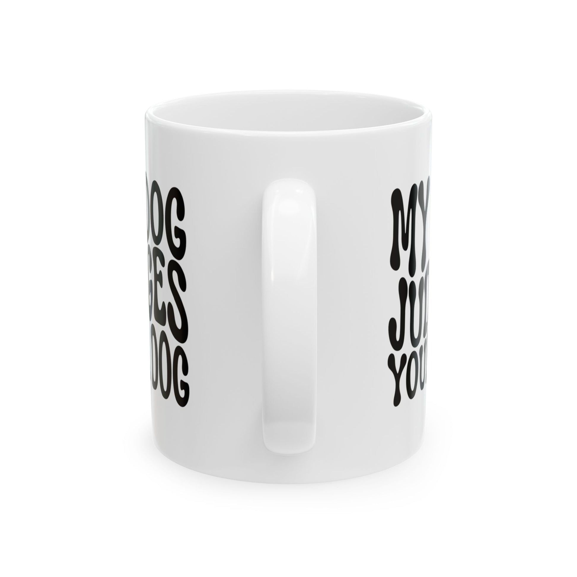 MY DOG JUDGES YOUR DOG Coffee Mug – Funny Gift for Family and Coworkers, Black, Ceramic, 11 oz