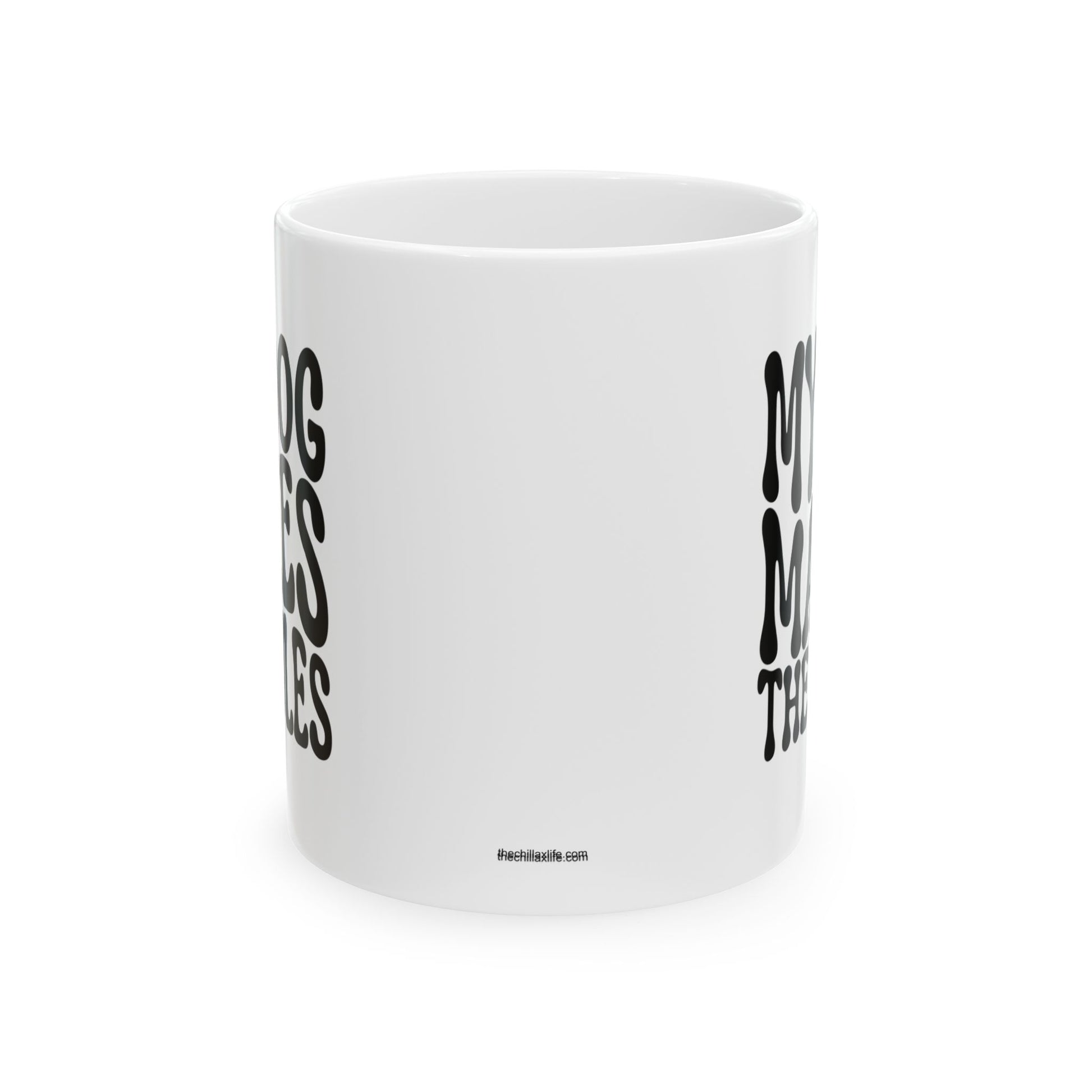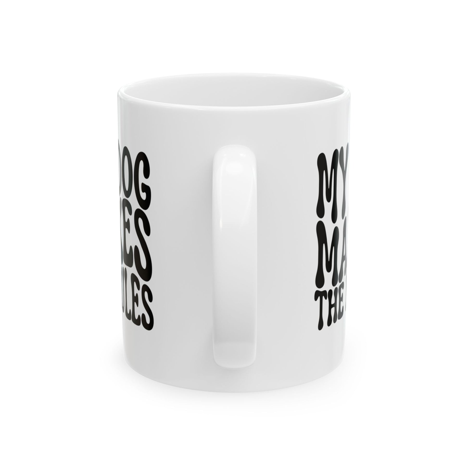 Sip your coffee, tea, or cocoa in this charming 11 oz ceramic mug that proudly declares, "MY DOG MAKES THE RULES." Crafted from BPA and lead-free materials, this mug is both dishwasher and microwave safe, ensuring convenience for your busy routine. Its vibrant Black design adds a splash of color to your kitchen or office, making it a delightful piece for everyday use.