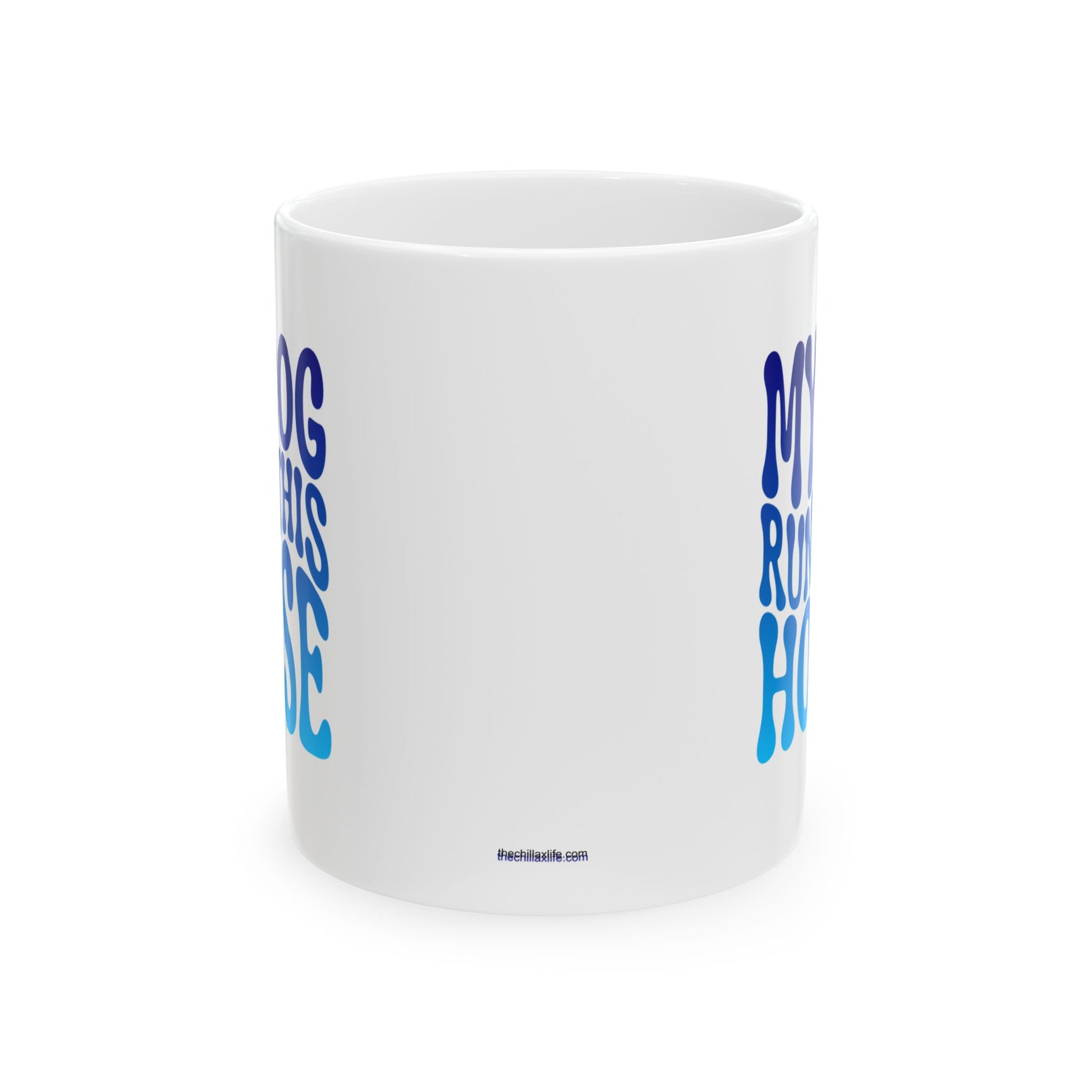 MY DOG RUNS THIS HOUSE Coffee Mug – Funny Gift for Family and Coworkers, Blue Gradient, Ceramic, 11 oz