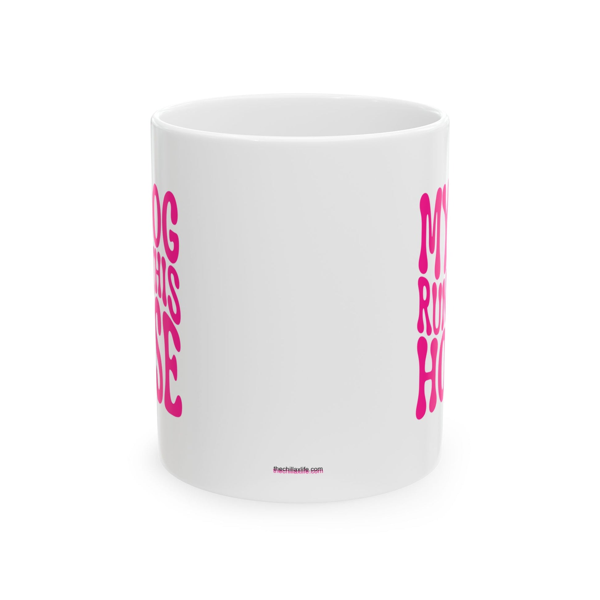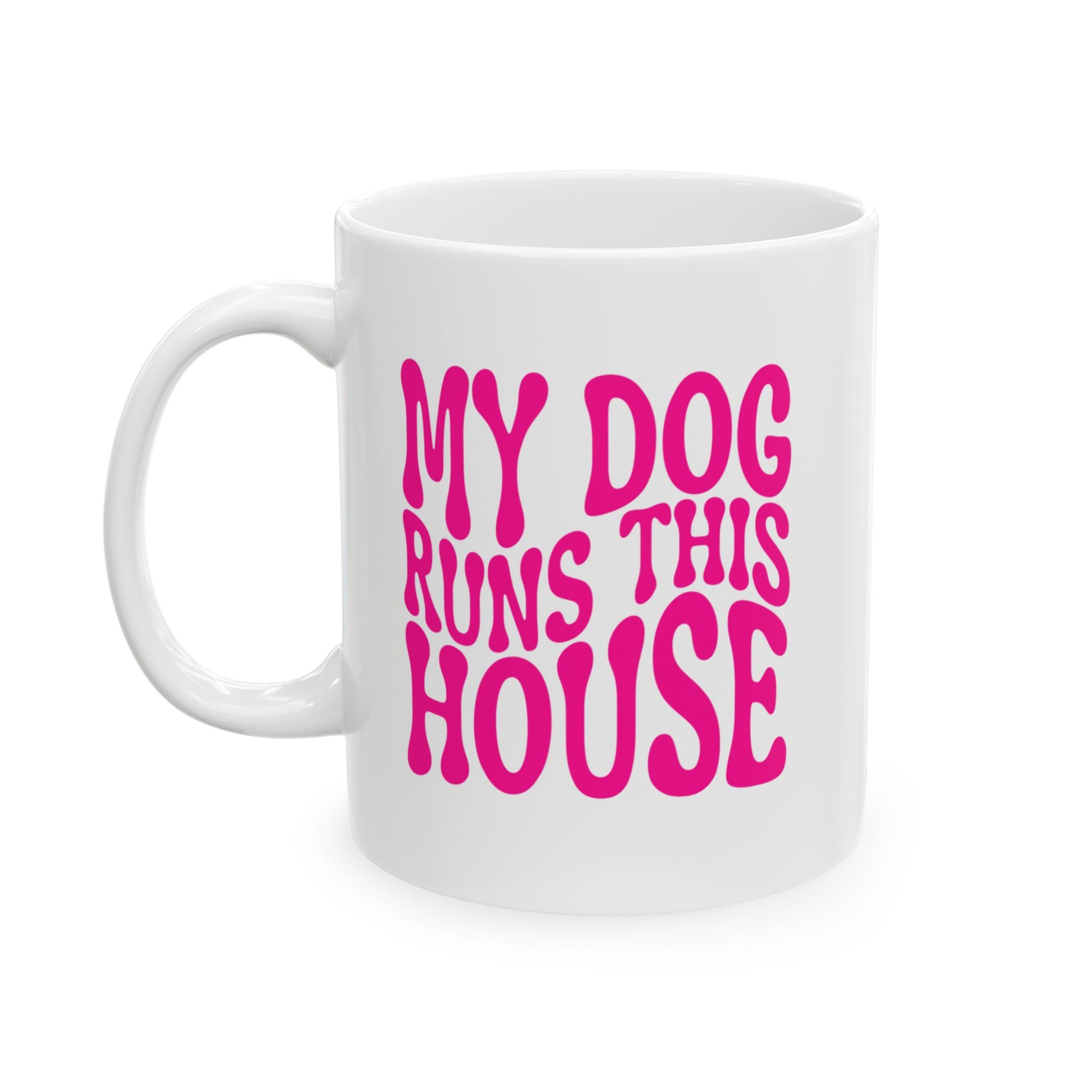 MY DOG RUNS THIS HOUSE Coffee Mug – Funny Gift for Family and Coworkers, Dark Pink, Ceramic, 11 oz