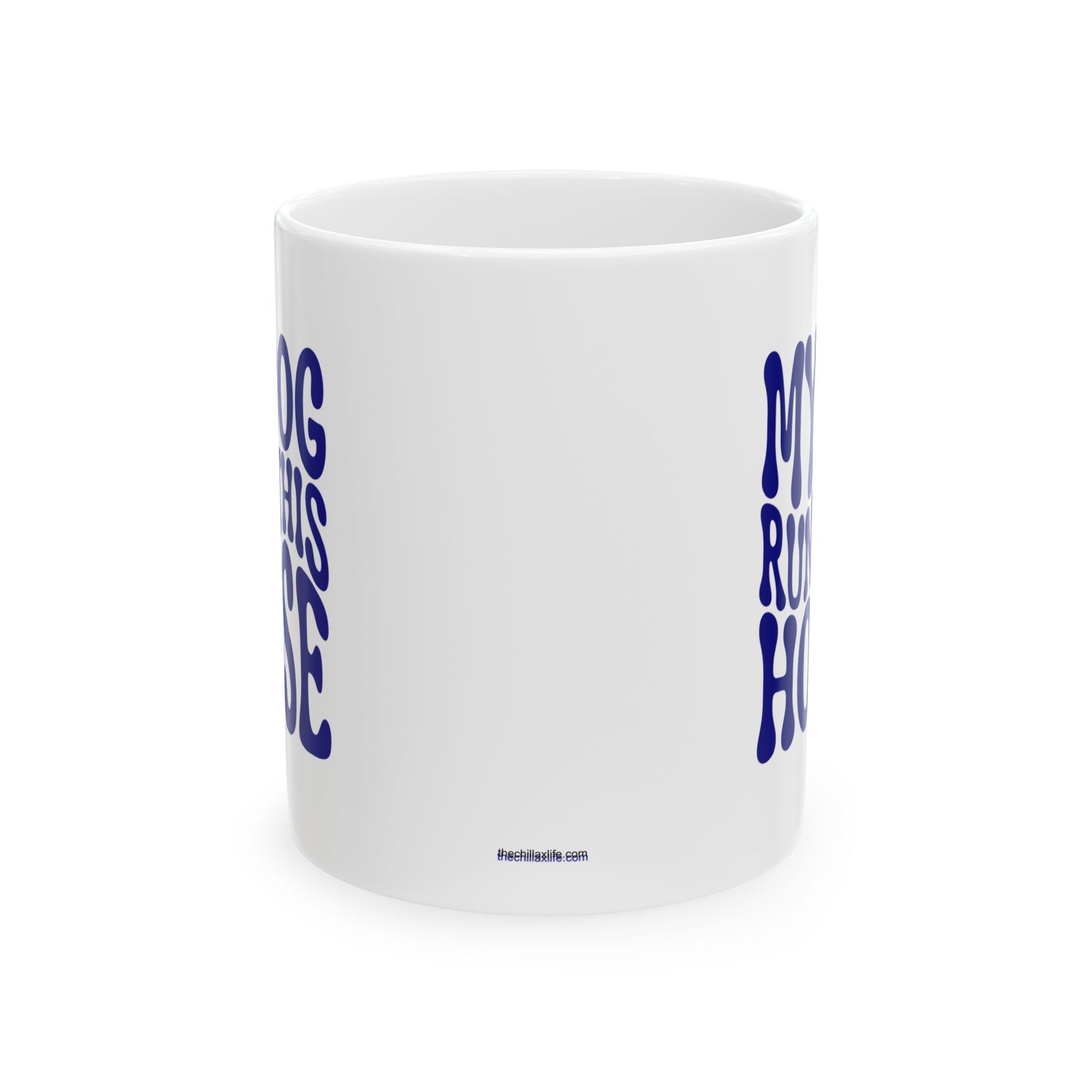 MY DOG RUNS THIS HOUSE Coffee Mug – Funny Gift for Family and Coworkers, Navy, Ceramic, 11 oz