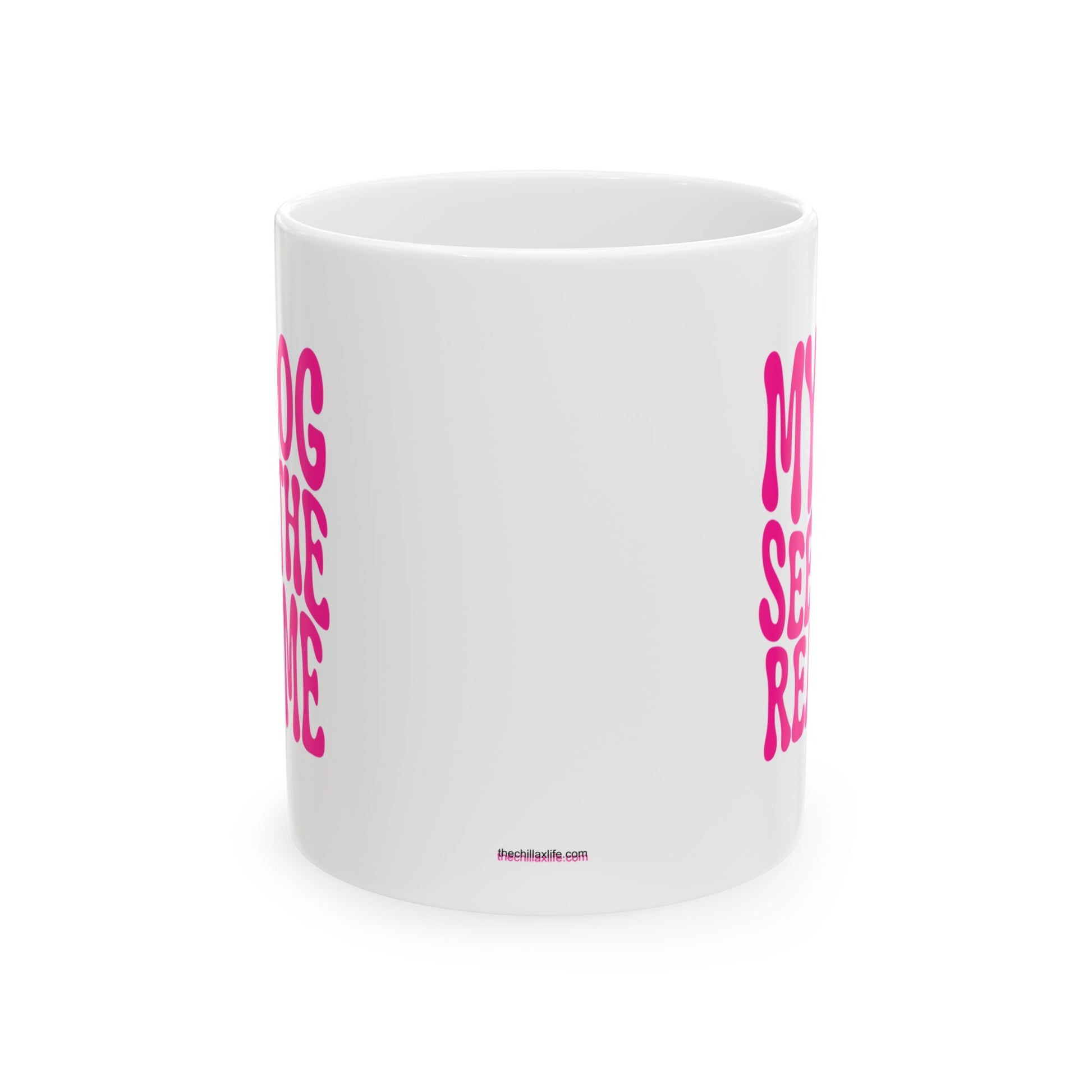 Start your day with a smile using this colorful 11 oz ceramic mug that showcases the witty phrase, "MY DOG SEES THE REAL ME." Crafted from BPA and lead-free materials, this mug ensures a safe drinking experience. Its vivid print and cheerful Dark Pink design brighten up any kitchen or office space, making it a fun conversation starter.